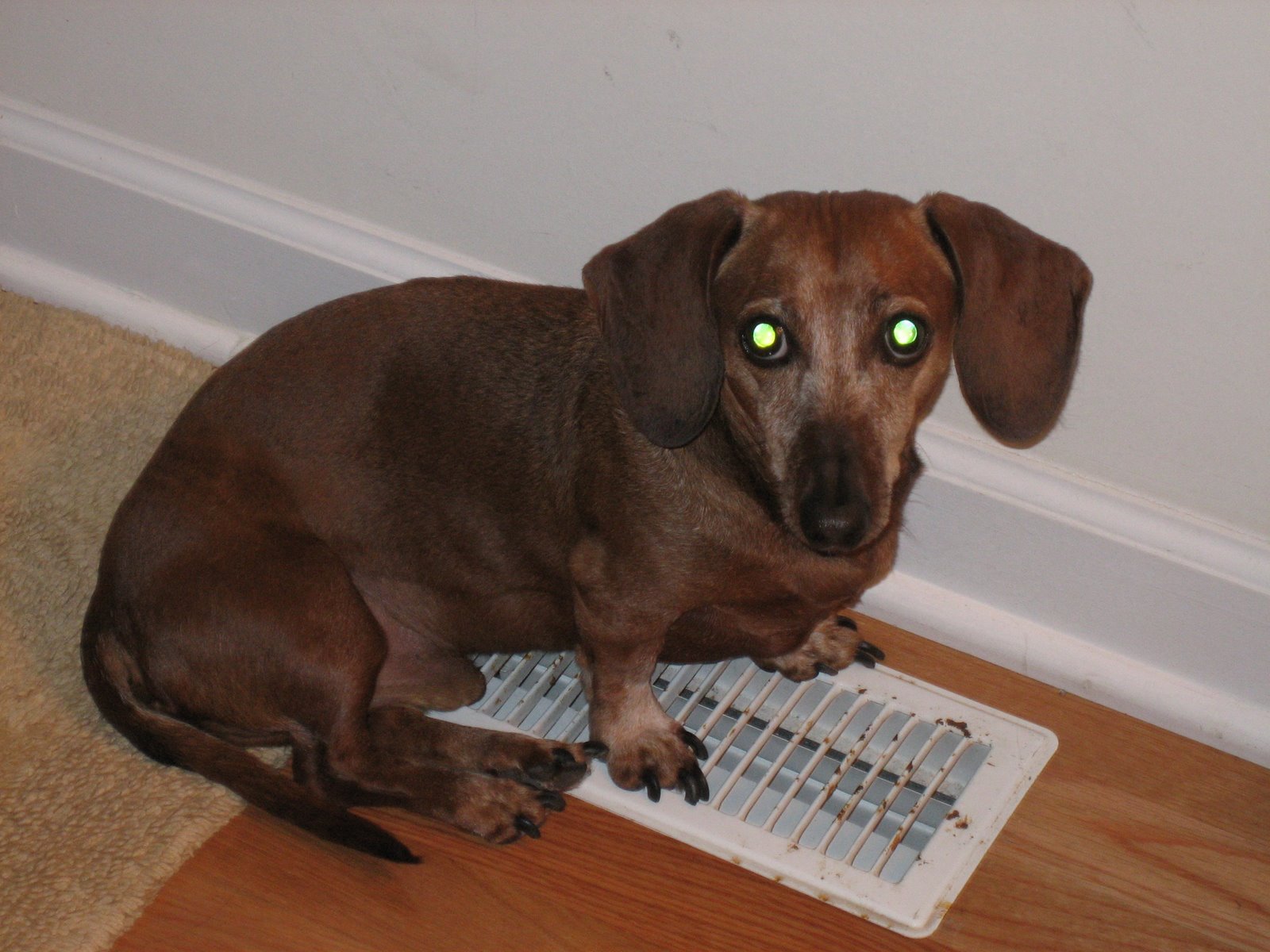 This, of course, is Oscar, His Royal Lowness, the original “big dog”, all 12.5 pounds of dachshund fury, doing what big dogs do best…. toasting his tummy on the heating vent in the wintertime.