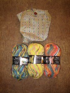 And as you can see, there was this dandy little Lantern Moon sock-project-sized holder that also jumped up onto the counter with the Opal. Jill got some sock yarn too…. just not quite as much. Andy exercised remarkable self control during the entire shopping trip. As we all know, I have no self control. I was led into temptation and quickly succumbed.
