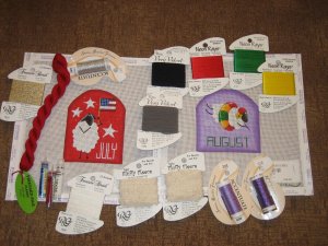 The store is In Stitches, and I have to say I’m very impressed with Laura, the owner, and her knowledge and suggestions as far as a stitch guide for how to gussy up the sheepies. I’m anxious to get started on them, particularly August, because it’s going to be way cute. And yes, arrangements have been made to get the rest of the sheepies to my house…. (**sigh**) At least if I went down, I dragged Jill with me, because she’s in the process of purchasing a snowman canvas and fibers, and Laura’s doing a stitch guide for her. 🙂 It’s her first needlepoint project, so I’m anxious to see how she likes it.