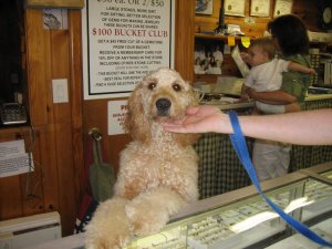 Almost forgot Daisy….Daisy is the very active Goldendoodle shop dog at Jackson Hole. I think she was more interested in Oscar than Oscar was in her (after all, Oscar isn’t a “dog person”).