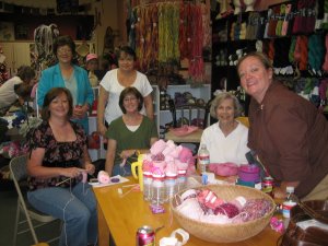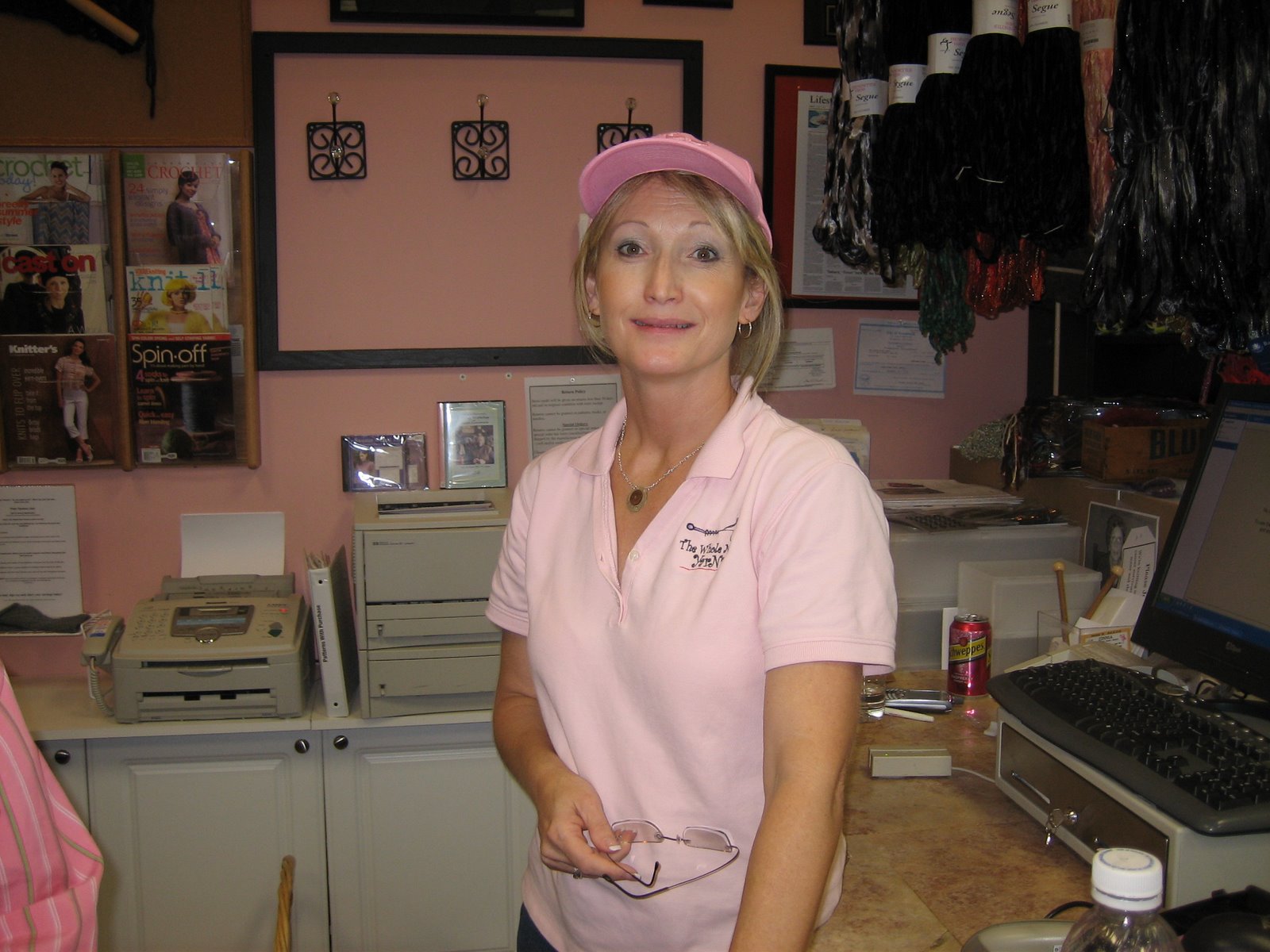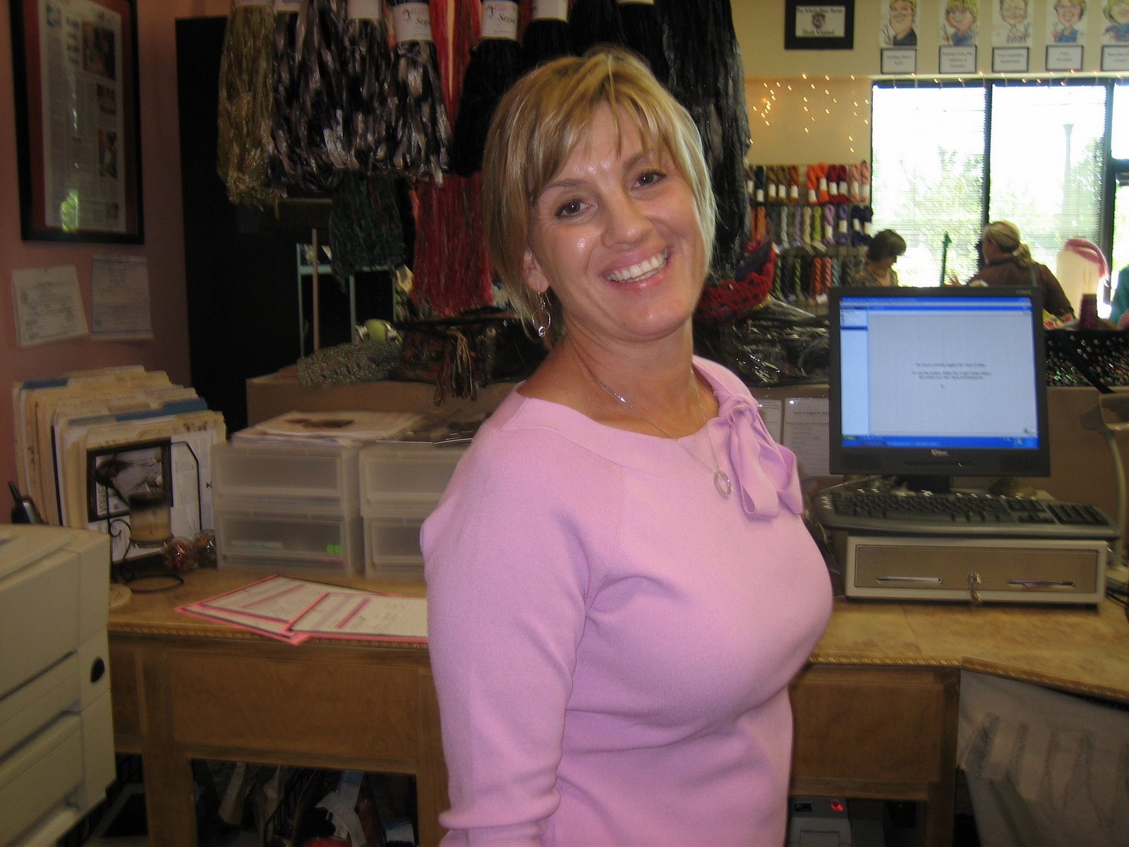 Debi the store owner made the whole thing happen:And last, but certainly not least, Jenn the wonder organizer, dare I say “organized” the whole thing by getting donations of pink yarn and coming up with games and activities and silent auction items.I told Jenn I had to put her picture on the blog so you could all see who had made my life so exhausting interesting for the past month or two. 🙂 Actually we’re coming down to the wire on the craft room. I’m hoping to post pictures of the finished product soon.