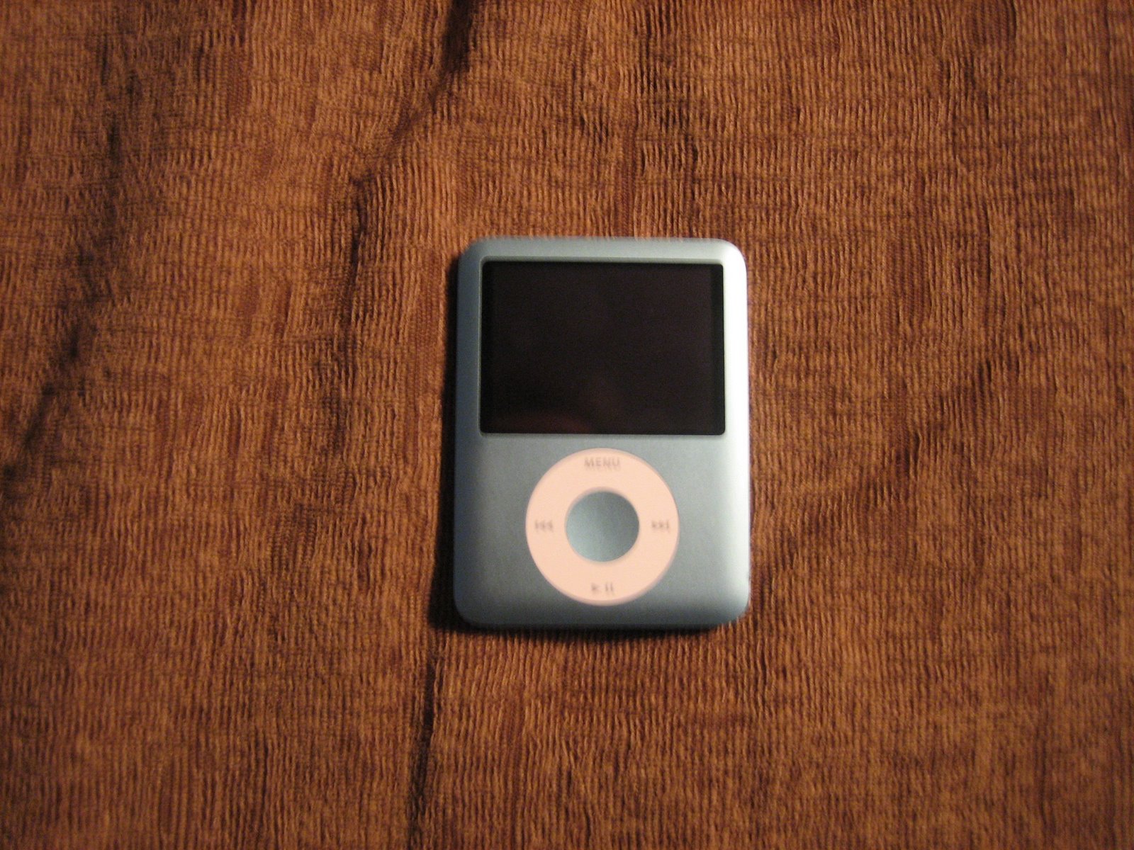 This is an itty bitty 8GB iPod Nano. It’s very cute, and it’ll be great to take with me to ASG so I can listen to music and my annoying podcasts on the airplane without bothering people. I also downloaded a pattern today to knit the Nano its own little sock. 🙂
