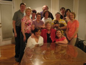 On the second row in the pic you see Jill, Judy, Linda, moi with HRL Oscar (who of course had to be in the middle of everything), and Cathy. In the back are my dear hubby Richard (who, using his Mensa-boy smarts set up a tripod and figured out the timer on the camera to get himself in the picture), Angela, Linda’s hubby Big Jim, Heather’s hubby Michael, and The Magic That Is Heather herself.