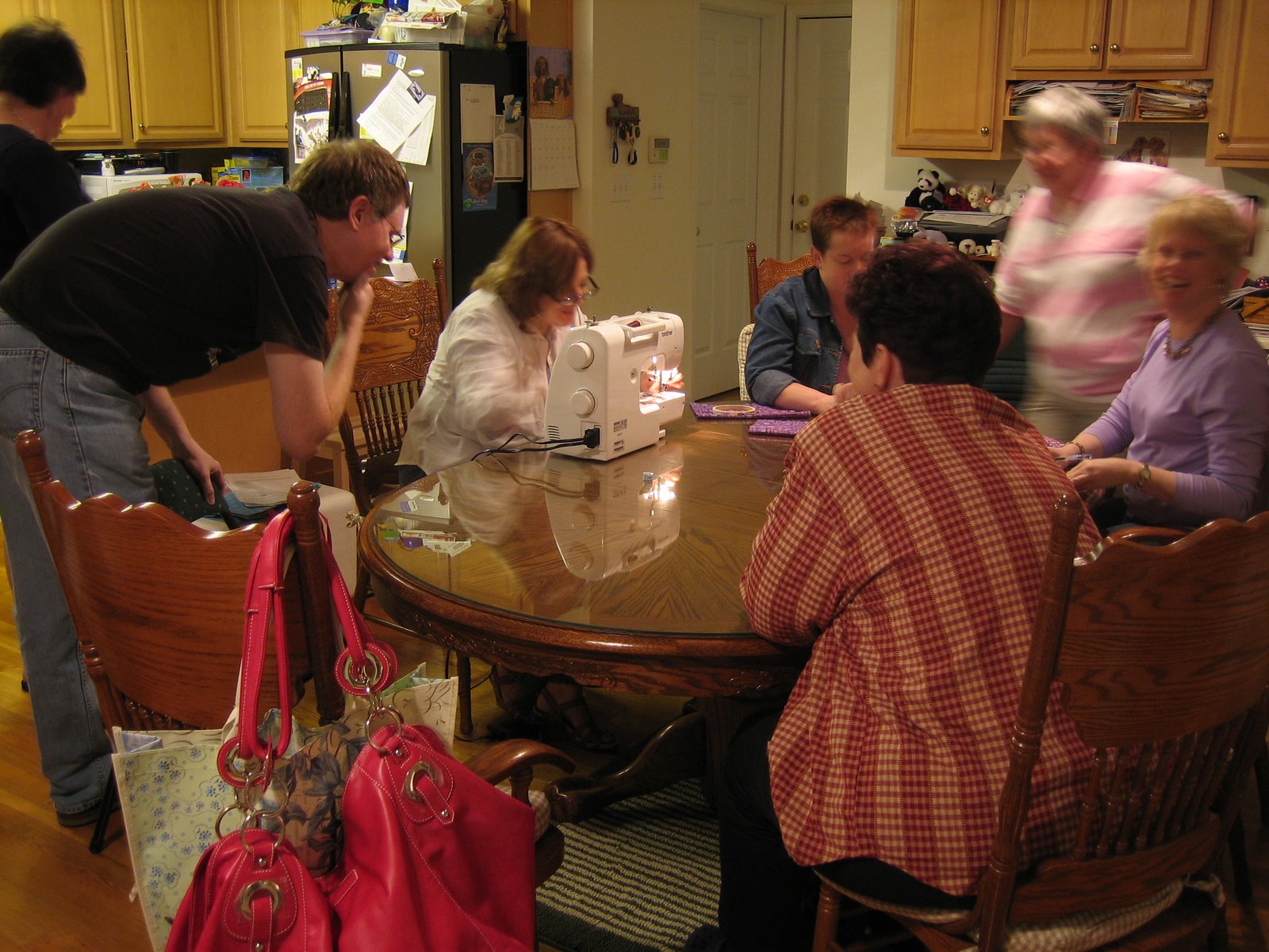 Yeah, it’s blurry. Richard once again set up the timer so he could get this nifty pic of him pondering what Ramona was sewing, so I figured I should put it on the blog. š