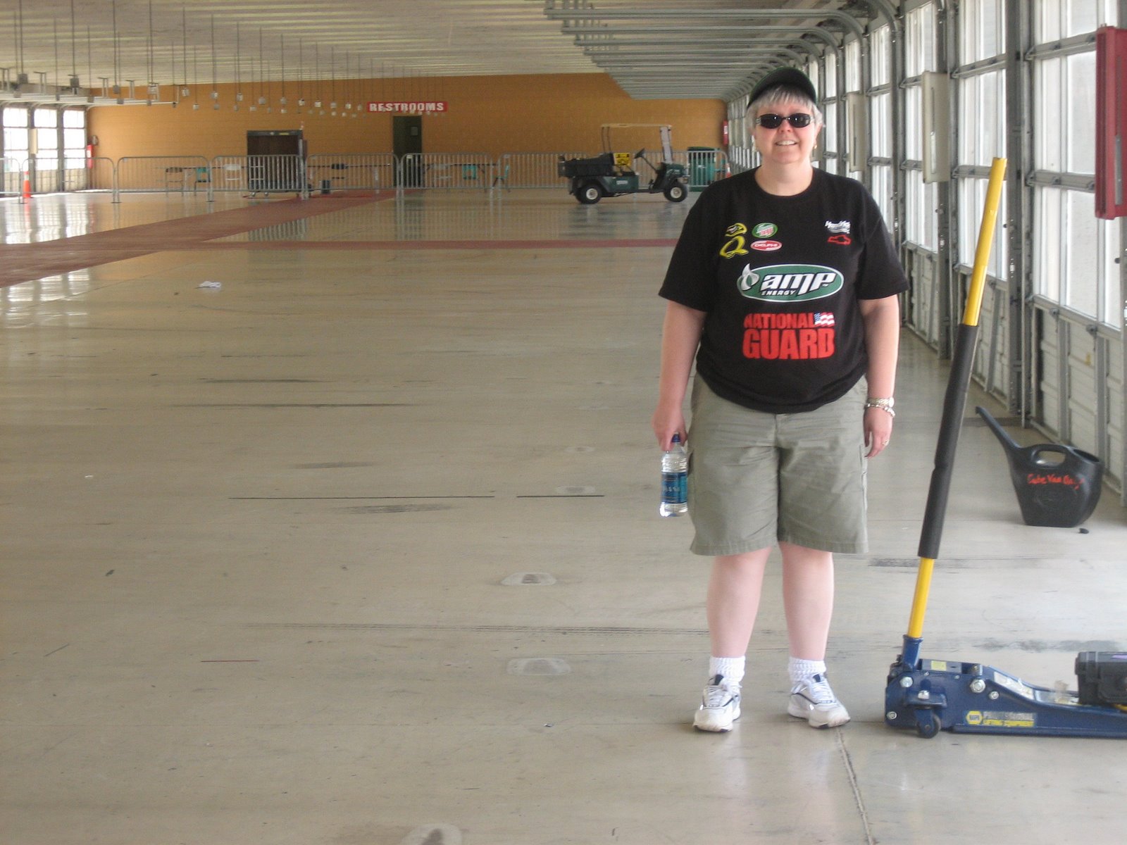We were down on pit road, right where the Cup cars would be pitting during the race. Here I am on the pit road wall:I found it amazing to see that there are power outlets and water spigots on the other side of the wall. I haven’t visited pit road at the other tracks to compare, so I don’t know if other tracks have similar accommodations for the teams.