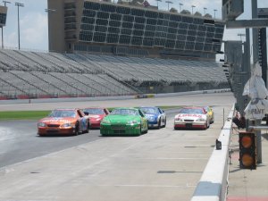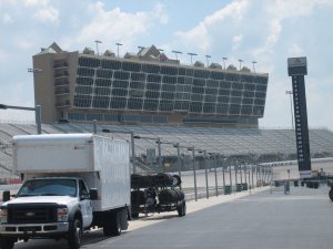 Also on pit road were the cars for the driving school. They weren’t Cup cars; they were more like modified Nationwide series cars:We were able to get up close and get a good look at the inside of them as well:Maybe one day I’ll save up my pennies and at least go for a ride-along in one of these cars. Since I don’t know how to drive a stick, it would be kind of hard for me to actually drive one of them (even though that would be waaaaaay kewl). Maybe I’ll just get a firesuit and a helmet. 🙂
