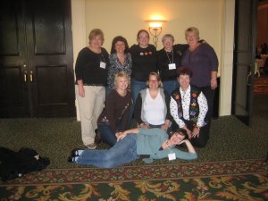 On the back row are Debbie B, Vicky, Teresa, moi, and Joy. Front row are Jill, Ann, and Angela. The “come hither” pose in the front is The Magic That is Heather.