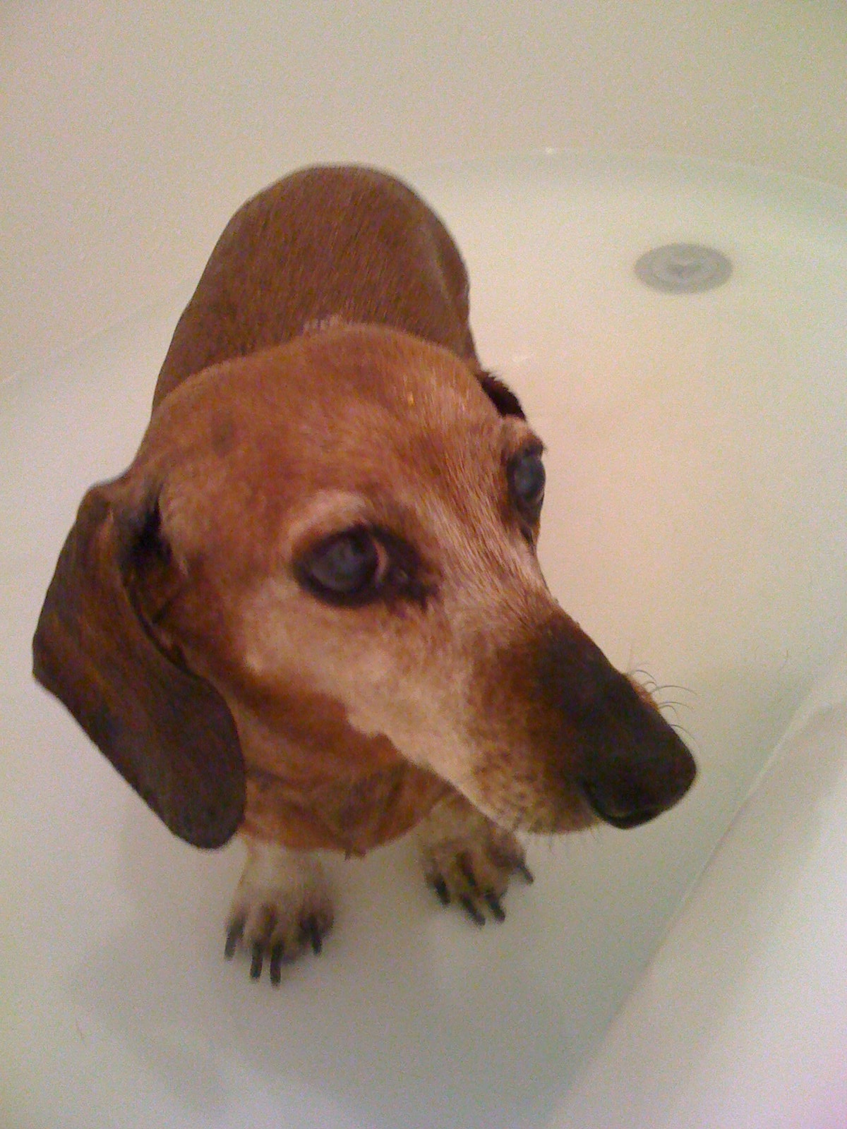 >Oscar is SO expressive! And cute too! You can just see how he feels about that bath!