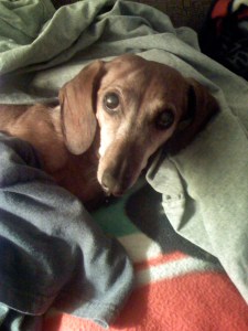 We miss him terribly. Last night it was hard to get to sleep, because I had become accustomed to his little rear snuggled up against my leg. And if you moved, he would slam his butt back up against you as if to say “perhaps you didn’t understand… I’m sleeping here, up next to you.” I had an entire half of a king-sized bed to myself whereas I’d become accustomed to only having a small area because the dachshund had to stretch out horizontally across the bed. I didn’t like having that much room.