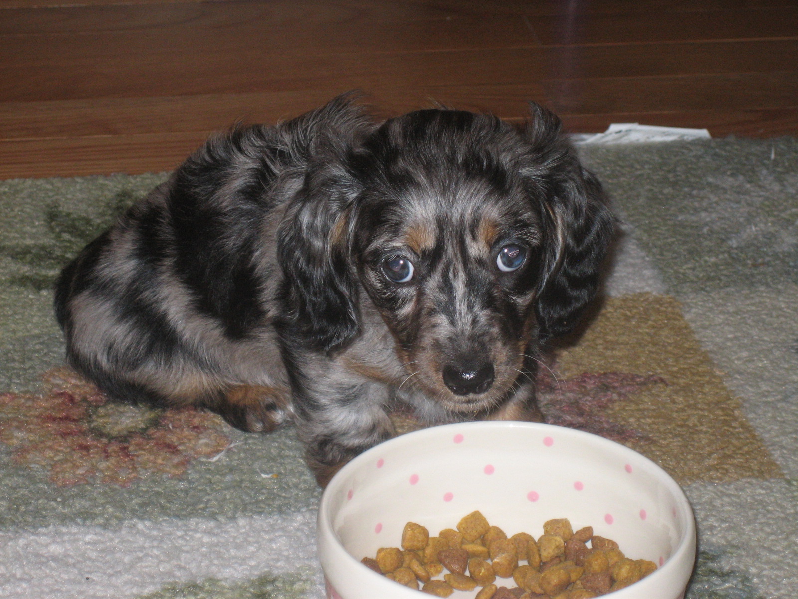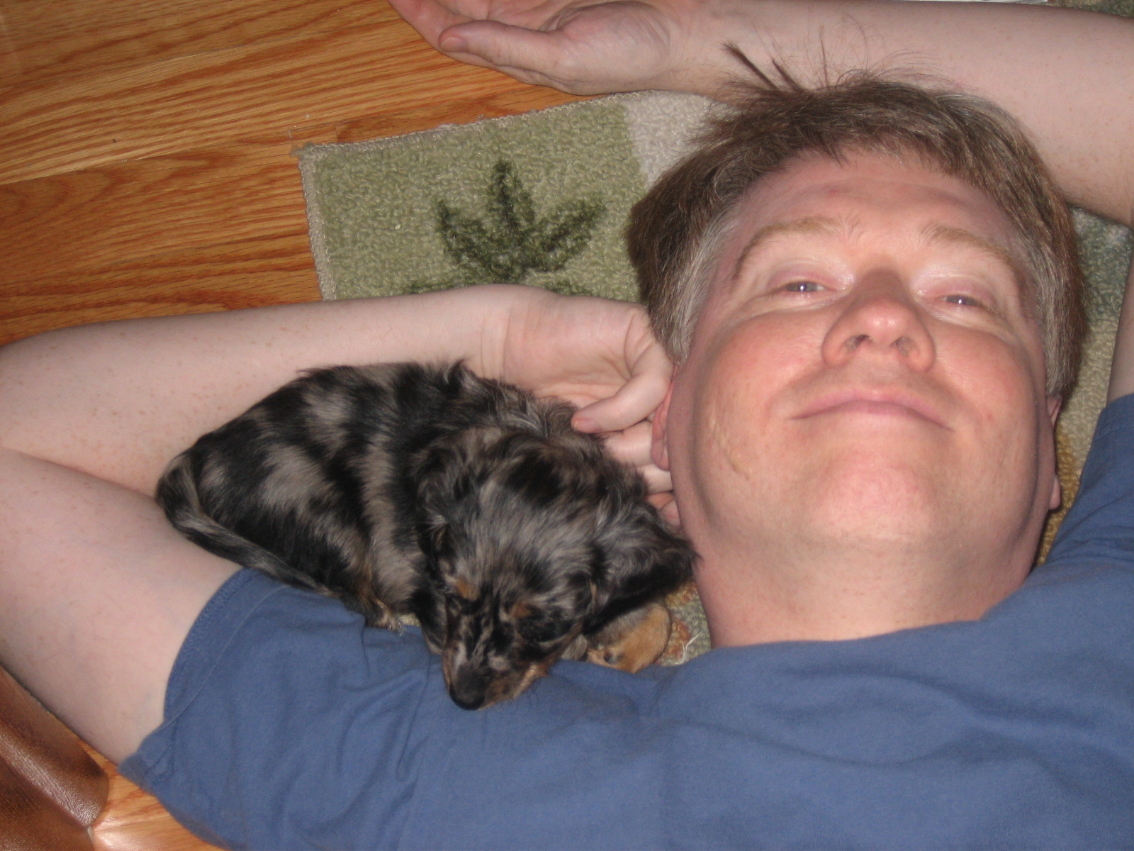 Meet Penny Jasmine. She was born 3/12/09 and joined our household this past Saturday from the folks at the Indian Cotton Kennels. We’ve been keeping her under wraps as a surprise to our friends, but she’s ready to make her debut. In case you can’t tell from the photo, she’s a longhaired black & tan dappled little girl. Right now she’s 3.1 pounds of dachshund fury.