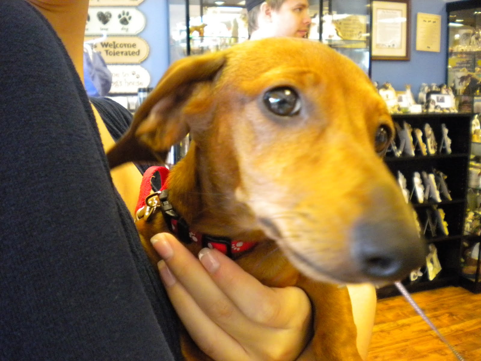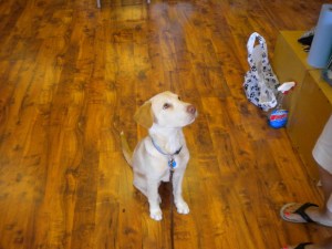 Meet Penny’s classmates…June is an All-American Breed dog who seems to have a bit of hound in her. Although she’s a good bit larger than Penny, she and Penny were playmates, and Penny delighted in doing everything the “big dog” did.Hayley is another All-American Breed dog who had a rough start in life. Her person found her at the age of about 3 weeks, abandoned and starving. With a lot of love and a lot of attention, she’s thriving, and she’s quite the star student in the class.Little Lita belongs to Susan’s assistant… you know I have a soft spot for red, smooth dachshunds, and Lita did not disappoint. She reminded me so much of Oscar, because she just wasn’t sure about all these dogs. Didn’t want to participate in all this puppy play — she’d rather hang there with her person and be fed the occasional treat, thankyouverymuch. And she always had such a concerned look on her face. It was like she was peering over her glasses as if to say “Are you sure you should be doing all that foolishness?” Ah yes, Lita. We’ll rely on you to keep all of them in line. 🙂