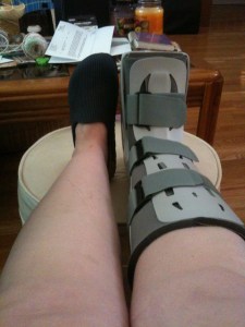 It’s better, but we’re still not at a point where I can go completely to the orthotics in my shoes. I’ve learned how to maneuver with it pretty well. It’s still annoying and hot, but if it keeps me from having surgery on the foot, which sounds completely unpleasant, it’ll be worth it. I still think I’m secure in my status as “Queen of the soft tissue injury” between this, the carpal tunnel, and the rotator cuff tears in both shoulders. 🙂